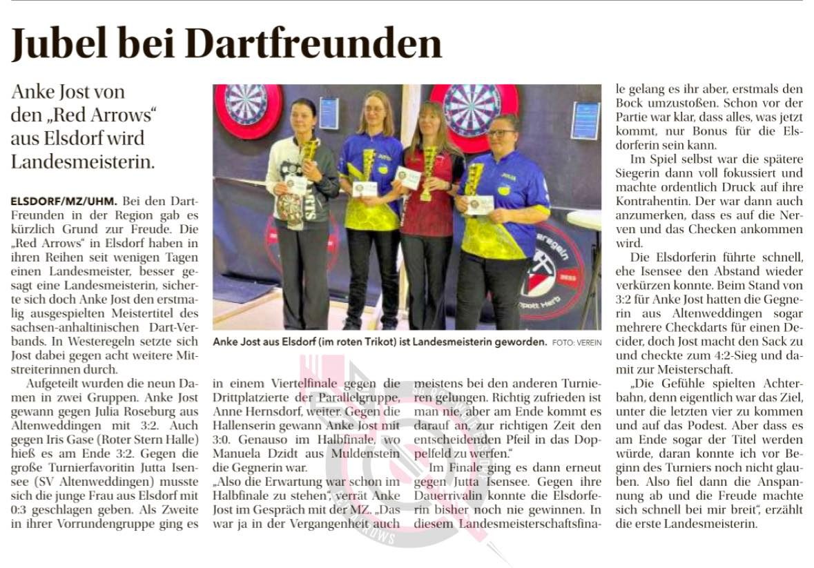 Unsere Landesmeisterin von Sachsen Anhalt im Dart! Tolle Leistung Anke Quelle MZ Zeitung